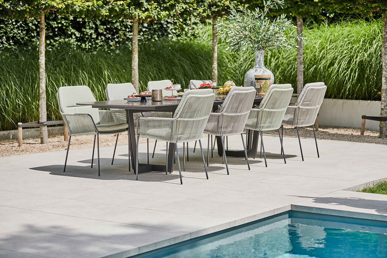 The Palermo dining set is perfect for open-air meals or alfresco entertaining, combining elegance with practicality.