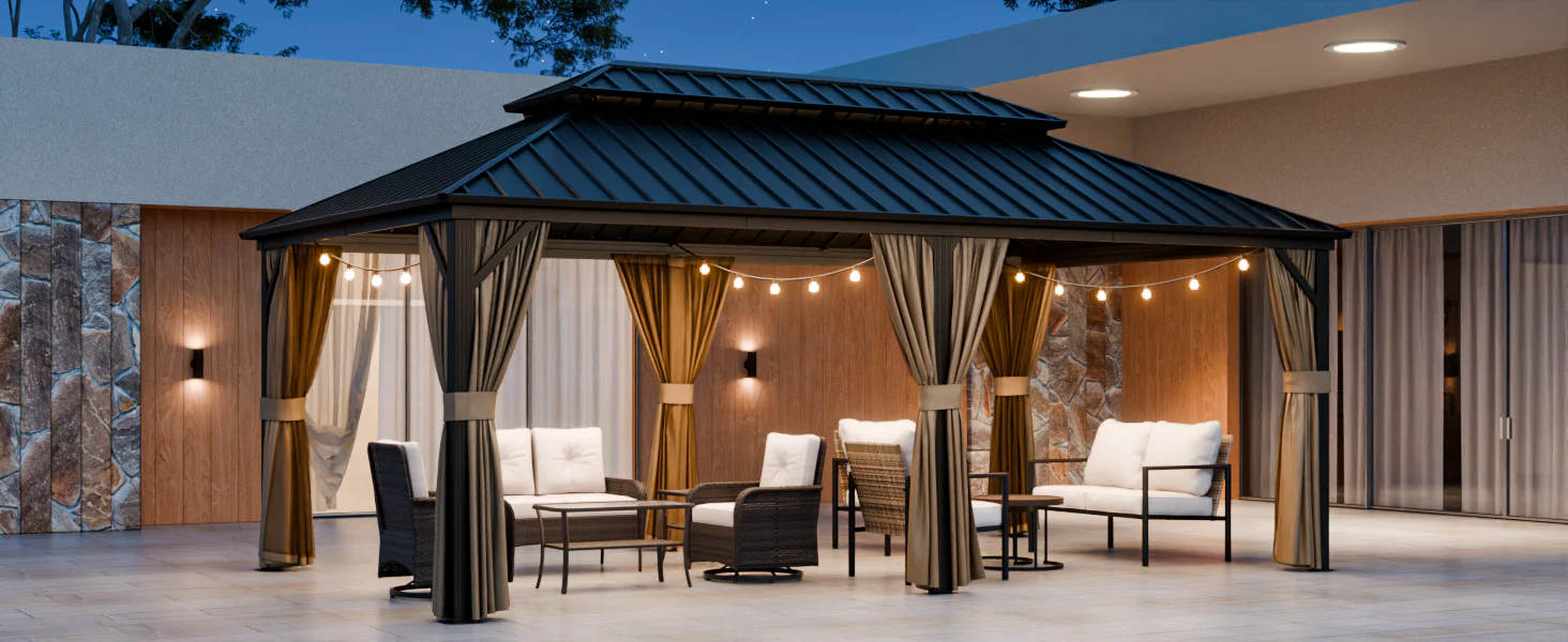 Why People Need It: It solves the issue of weak gazebos collapsing under bad weather. The steel build offers unmatched sturdiness with an elegant design.